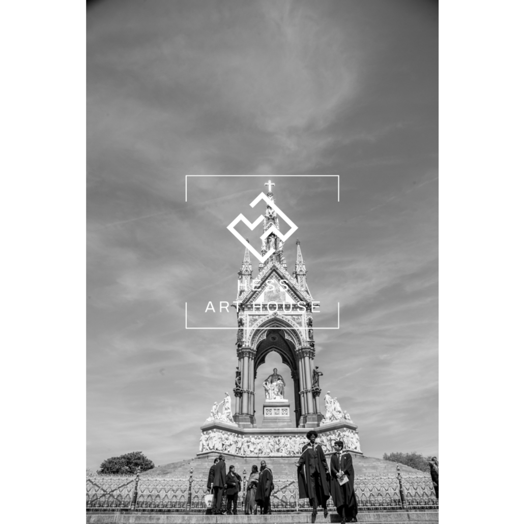 Ben T. captures the majestic presence of the Albert Memorial in this striking black-and-white limited edition photographic print. The monument, with its intricate gothic details, stands tall against a dramatic sky, evoking a sense of grandeur and history. Figures in the foreground add scale and a human element to the scene, reminding viewers of the memorial's enduring place in London’s landscape.